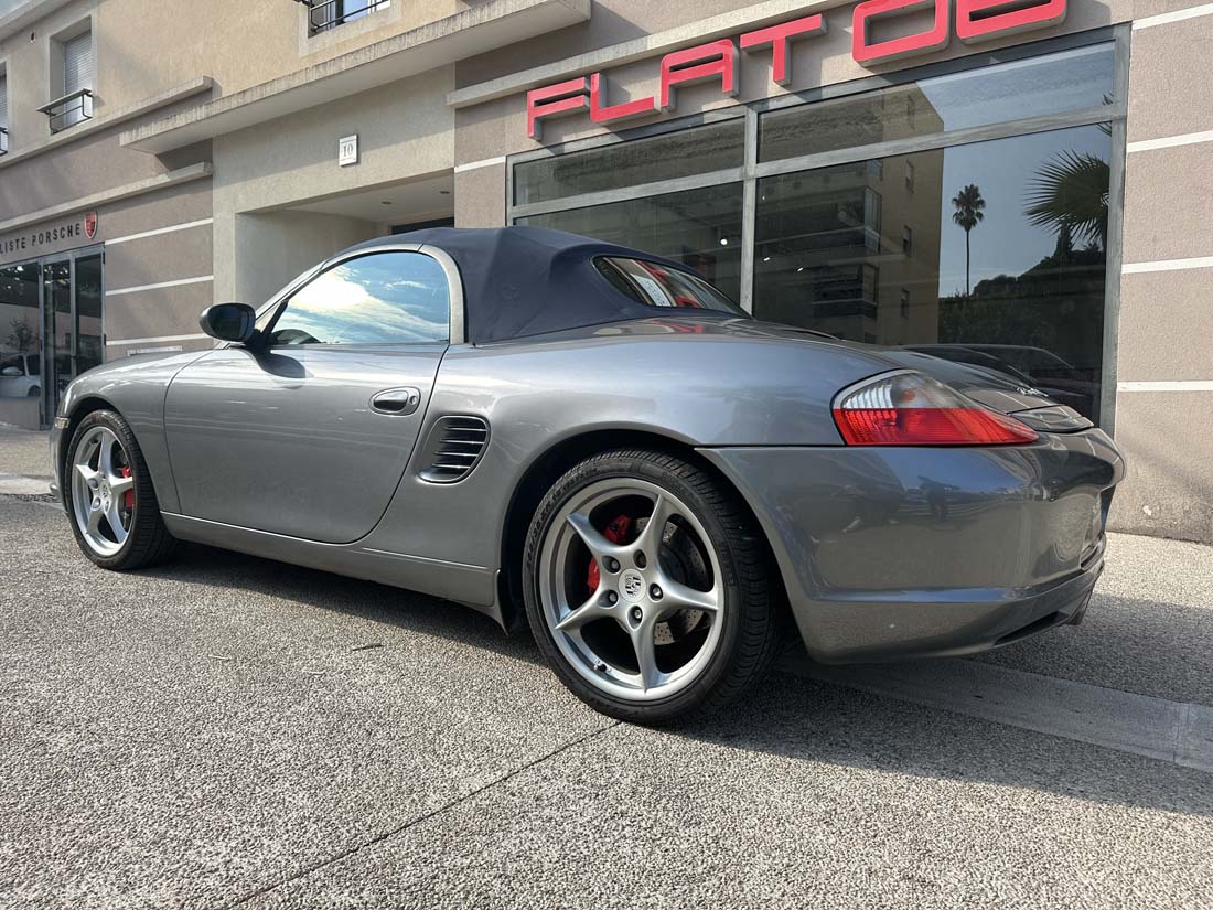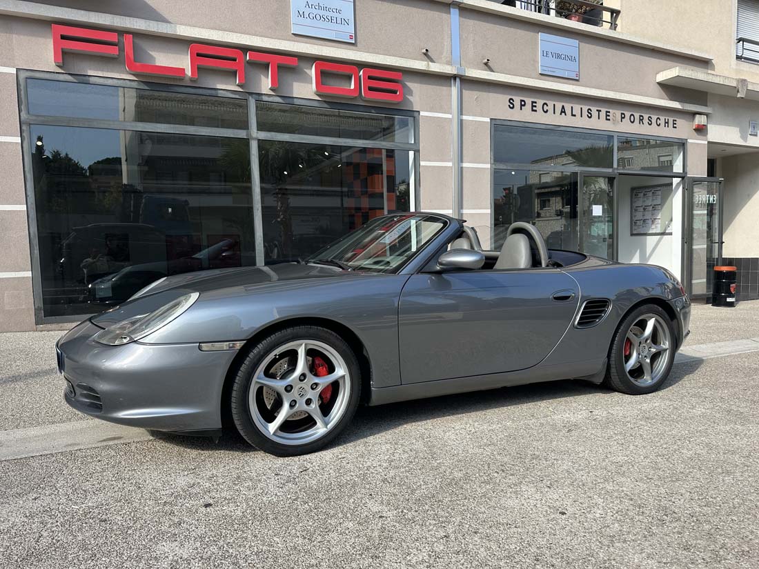 Votre Centre Spécialiste Porsche FLAT 06 a le plaisir de vous proposer ce magnifique Boxster S Gris bleuté garantie 3 mois, mis en circulation le 09/12/2002 avec une puissance de 260ch