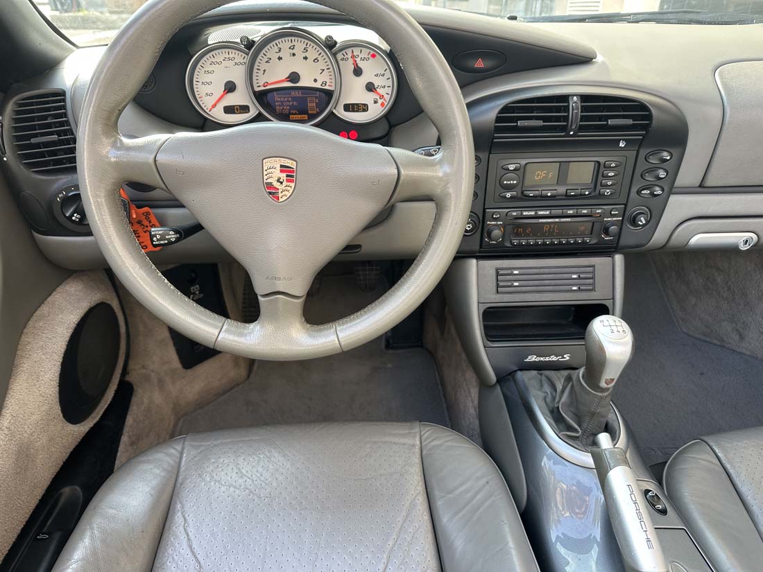Porsche Boxster I (986) 3.2 S cabriolet, gris c, 18 cv, 2 portes, couleur intérieure : gris, première mise en circulation le 16/01/2003, garantie 6 mois.